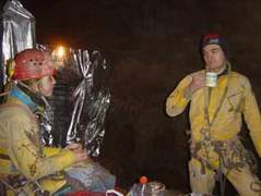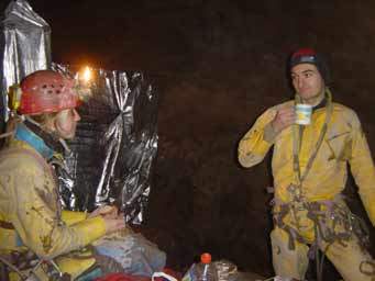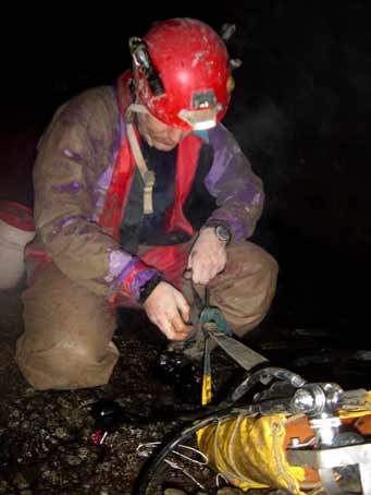 La saison hivernale 2003-2004 aura été l'occasion, au gouffre de la Poya, de planifier à la fois des remontées et des plongées. Sur 10 siphons recensés dans ce gouffre, seuls quelques-uns sont vraiment intéressants à plonger. Il y a incontestablement le siphon du fond, le S1. C'est la porte au fond du réseau. Cependant, nous sommes clairement sur une région noyée: le S1, le S3 et le S5 sont à la même profondeur. Un autre siphon intéressant est bien sûr le S7: c'est le terminus de la partie amont de la principale arrivée d'eau dans les « trivières ». Après plusieurs tentatives de vidange de ce siphon durant la saison précédente, il est devenu évident que la suite appartiendrait aux plongeurs. Le second intérêt de ce siphon est qu'il n'est qu'à deux heures de l'entrée pour une bonne équipe, à 240 m sous la surface. Première plongée La première sortie de la saison est donc prévue du vendredi 26 au samedi 27 décembre 2003, le thème principal en est la plongée du S7. Les participants sont: Patrick Deriaz, Alain Quiquerez, Vincent Berclaz, Philippe Moret (Phil), Rémi Heijn, Johnny Martinez (Jo), Denis Favre et moi-même. Nous partons de bonne heure, après avoir réveillé Jo qui venait de se coucher. Nous arrivons au parking de Flaine vers 10 heures du matin et entrons dans le trou vers midi, après maints coups de pelle. Rapidement, les puits s'enchaînent. Une équipe de quatre, Denis, Jo, Phil et moi-même, partons avec le matériel de plongée. Nous arrivons assez rapidement au bivouac puis au S7. Denis et Jo se relayent pour le bi-4 litres 300 bars qui est quand même lourd. Nous arrivons au siphon vers 15h00. Tous me donnent un coup de main pour préparer l'équipement pour la plongée. Vers les 16h30, je peux y aller. La galerie qui fait au départ dans les 2 mètres de haut et 2 mètres de large s'élargit assez rapidement pour atteindre dans les 4 mètres de large. Le sol est composé de cailloux alors que les parois et le plafond sont de la roche. L'eau est vraiment très claire, mais elle touille vite. Je repère assez vite un passage à gauche, dont je vois même une partie de la pente de sable qui arrive jusqu'au milieu de la galerie. Je continue la descente au milieu de la galerie, tenant le dévidoir à bout de bras dans la main droite. Les indicateurs posés sur le fil bloquent un peu au passage du guide fil, mais c'est supportable. Je fixe mon fil à l'aide d'un élastique au milieu de la galerie sur un gros caillou et continue la progression. Après quelques mètres, mon fil s'emmêle dans le dévidoir. Heureusement, ce n'est pas grave et ça se répare très vite. J'accroche encore le fil à un autre caillou, la profondeur augmente, je suis déjà à 8 mètres de profondeur et la galerie semble toujours descendre. Je continue, la galerie s'élargit sur la droite, une arrivée semble remonter en surface. La galerie principale continue, elle, sa descente. J'effectue donc un nouvel amarrage, à un point bas de 15 mètres, au milieu de la galerie sur un morceau de roche et pars dans la galerie de droite. A quelques mètres de l'amarrage, je croise un autre être insolite dans cette galerie, une planaire. Elle est posée sur le fond, elle se déplace sur de la roche à nu. Elle doit bien mesurer le centimètre et demi. Je commence la remontée au travers d'une langue de sable, je sens que cela touille très vite, je me dépêche en me demandant si je vais trouver de quoi fixer mon fil. Un petit becquet dans la paroi m'apparaît. Il semble avoir été taillé là pour que j'y pose mon fil. J'en profite donc! Là aussi, deux choix s'offrent à moi, continuer la remontée où prendre à gauche dans une galerie qui semble être parallèle à la galerie du bas. Je commence par la remontée, qui s'arrêtera assez vite, la pente de sable rejoignant le plafond. J'enroule mon fil jusqu'au dernier amarrage dans une touille complète, me demandant déjà si je vais pouvoir retrouver l'autre galerie. Arrivé au dernier point, je palme dans la direction ou je me souvenais avoir aperçu la galerie et rapidement je sors de la touille. Ouf, je suis dans la bonne direction. Je continue donc dans cette galerie, qui est de dimensions plus modestes que la galerie du dessous et plus haute que large. Je profite d'un nouveau becquet pour un autre amarrage et je reprends la route. Je passe un virage à droite et la galerie continue. Tout à coup, j'arrive en bout de fil. Ça tombe bien, j'arrive aussi au terme de mes tiers. La galerie, elle, continue et je regrette amèrement de ne pas avoir eu 10 mètres de fil de plus. Je coupe donc le fil et fais un nœud sur un becquet dans la paroi. Je sens les premiers frissons de froid qui me saisissent, l'eau est à 4 degrés. L'euphorie de la pointe terminée, les sensations de base telles que le froid reviennent. Je sais alors que je ne suis plus immortel (car comme tout le monde le sait, en pointe on est immortel). Je sors donc mon crayon et commence la topographie. Je peux inscrire les largeurs pour les deux premiers points topo, mais après je dois procéder de mémoire. En effet, les particules en suspension m'empêchent de distinguer les parois. Au cinquième point topo, le crayon fatigué décide de me lâcher. Je ne vais pas me laisser faire par un morceau de bois. Je le taille donc à l'aide de mon sécateur. Ce n'est pas vraiment l'usage de cet outil, mais cela me permet de terminer les points qui me restent. Je fais surface au bout de 28 minutes de plongée, déçu de ne pas avoir traversé. Le point bas du siphon est à 15 mètres, mais une branche continue à descendre. L'arrêt topo s'est fait à 83 mètres de l'entrée du siphon, à 4 mètres de profondeur sur une galerie qui continue à monter. Nous commençons à ranger le matériel lorsque la seconde équipe arrive. Cela tombe plutôt bien, car compte tenu de la plongée, tout le matériel peut ressortir. Vincent est d'accord pour prendre les bouteilles de