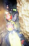 Après avoir bu une soupe chaude, nous partons dans le S3. C'est en fait une galerie constante de 2m de large pour 1,5m de haut, ressortant au bout de 35m dans une cloche d'air.