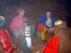 Samuel et Patrick en amont du siphon Bournier, par JL. Galera