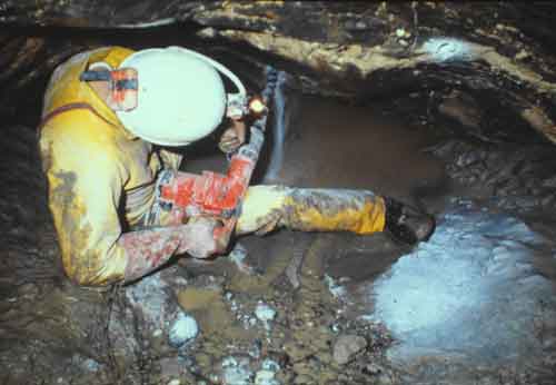 En 1994, Olivier Gaspé et Jean-Christophe Agnès explorent le Siphon aval jusqu’à –55 et le topographient sur 160m.