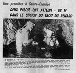 Désobstruction de l’entrée du Renard par E.D.F. (Dominique Prébende, F.Ravier). Aménagement du gouffre par E.D.F.. Mise en place des échelles pour mesure des niveaux d’eau. Une station de jaugeage a été installée par M.Ravier le 22/03/1955 sur la rivière souterraine Saint-Vincent jusqu’au 09/01/1962.