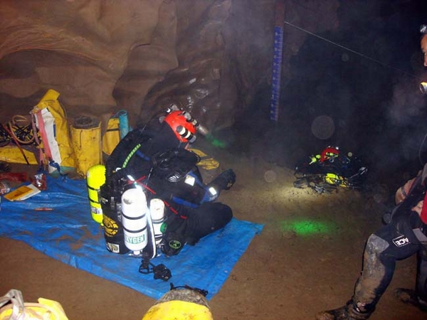 Durant les campagnes d'étude et d'explorations relatées ci-après, nous avons pu apprécier la valeur et la qualité de certains équipements et matériels. L'engagement de certaines explos, la masse et l'encombrement du matériel à transporter, le temps imposé par les prises de vues vidéo et photographiques, les relevés topographiques, induisent des équipements fiables, qui assurent la sérénité et la sécurité de tous les participants. La plongée souterraine ne représente qu'une « niche » peu rentable, à laquelle seuls des passionnés s'intéressent en matière de production et de développement de matériel. Il serait ingrat de ne pas remercier expressément :