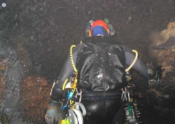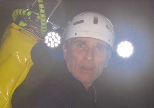 Le changement d'univers est radical. Dans toutes les directions, les faisceaux des phares se perdent, rien n'accroche, hormis le talus d'argile promptement ascendant. L'ordinateur décompte vite les quelques paliers affichés. Voilà un canyon, les deux parois se resserrent. A l'aplomb : le miroir. Un palier de principe, malgré le froid qui commence à saisir et enfin l'air libre.