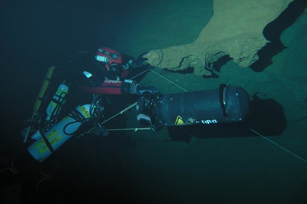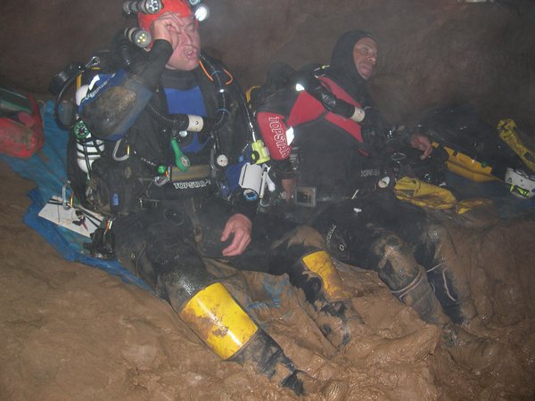 André, Peter et Thomas s'immergent dans le siphon n°2. Ils ont chacun un recycleur Kiss et leur propulseur Silent Submersion. Ils emportent le compas et un dévidoir Bardes de 400 mètres, étiqueté à partir de 1150m, point ultime de l'exploration 2005. Ils emporteront également une bouteille de secours chacun qu'ils déposeront à 1200 et au terminus de leur exploration, ce qui finira de sécuriser la galerie.