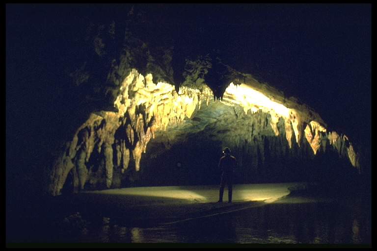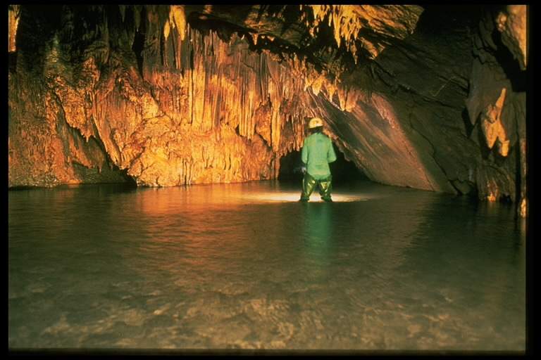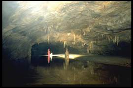 ETE 1995 Une exploration jusqu’au siphon S4 laisse apparaître un violent courant d’air. Ce passage latéral soufflant nous intrigue et fera l’objet d’une expédition les années suivantes. ETE 1997 Le franchissement du siphon 5 sera une formalité après un recreusement des sables qui bloquent un petit chenal de plafond. L'exploration va nous mener jusqu'à la cote 5871m, point de confluence de 2 affluents qui se terminent sur siphon à respectivement à 6076 m et 7791 m. La topographie de 8544 m sera réalisée complètement. Mr Nikos IOANINIS réalisera la totalité de l'exploration lors de nos travaux de topographie. Une aide locale nous viendra du représentant du canton Mr LEFTERI, Maire de KOKINOIA . L'hydromètrie, la chimie et la thermométrie viennent en complément des expériences de traçages menées lors des campagnes précédentes. |