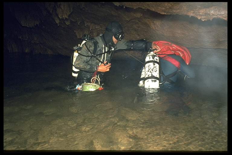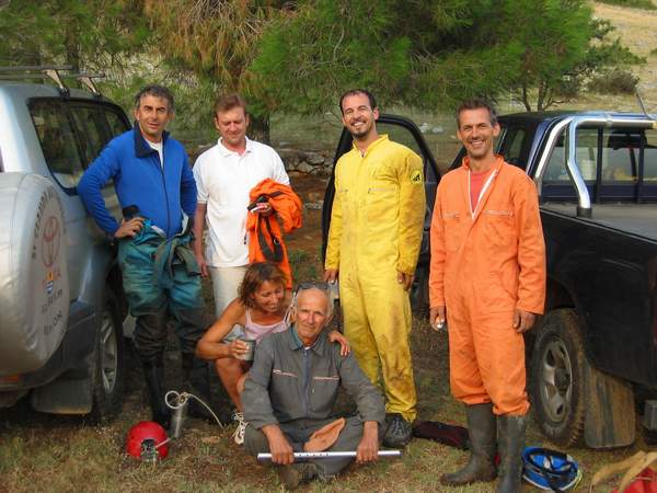 Equipe de plongeurs spéléos : Avalianos Giorgos, Cordier Régis, Cordier Vincent, Filippi Elisabeth, loannidis Nikos, Laethier pascal, Reile Pascal. Et plus récemment : TRAVELAS Giorgos, KORILOS Kostantinos, KATSANOS Periklis, THEODOSIADIS thomas, TRIZONIS Vasili, DIAFAS Nikos , GIANNOPOULOS Vassili. |