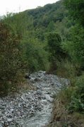 Comme en 2000, nous installons notre camp de base dans le refuge montagnard de Matka House, à grand renfort de portages et de va-et-vient de charrette à bras avec l'aide des membres de Peoni. Tout est en place le soir même de notre arrivée si bien que nous effectuons une première plongée de reconnaissance dans Matka Vrelo dès le lendemain! Mauvaise nouvelle de ce coté là: comme les spéléos locaux le soupçonnaient, l'entrée de la résurgence est presque entièrement obstruée par d'importants déblais rocheux provenant de la construction, plus haut sur ce versant du canyon, d'une route menant au chantier d'un barrage hydroélectrique qui se bâtit sur le cours supérieur de la Treska. Par souci d'économie, sans doute, l'entrepreneur s'est contenté de pousser au bull les gravats dans le lit de la rivière en contrebas. Du coup, là où nous accédions jadis au réseau par un beau porche de 4 par 3, il ne reste qu'une étroiture triangulaire d'un mètre de cotés! Le débit de 2m³/sec, à l'étiage, n'a, quant à lui, pas changé. Cela promettait… Malgré cela, nous nous attelons sans attendre au rééquipement de la cavité et, en 4 jours seulement, nous parvenons, sans nouvelle difficulté, au bout du fil de l'expé 2000, au dessus du puits "terminal". Cette fois, nous y sommes!