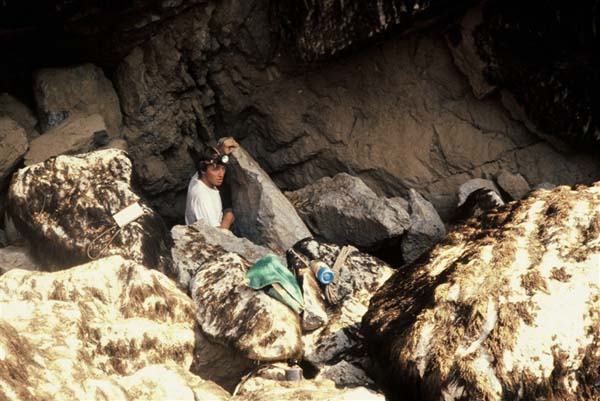 En 1978, Jean-Louis FANTOLI progresse de 50m jusqu'à une fracture encombrée de blocs après un point bas à -18m.