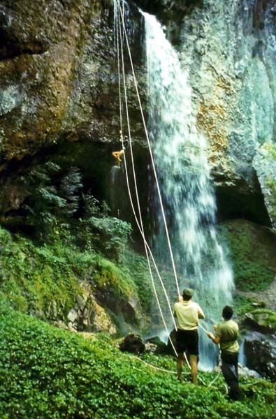 Edouard-Alfred Martel tente, en 1908, d'atteindre le porche d'entrée de la cavité. Entre 1934 et 1949, l'équipe dirigée par Max Cosyns prend pied dans la cavité et franchit en apnée le S.1. et progresse au-delà du S.2 par un shunt.