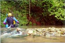 le lit de la rivière à cent mètres en amont de la résurgence.