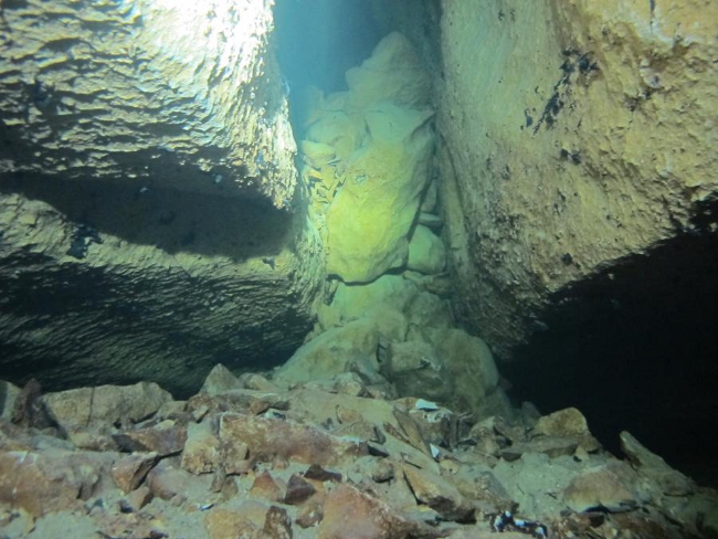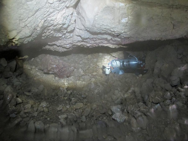 Une galerie, l'actif part sur la droite mais elle est assez intime et obstruée par un éboulis de rocher !