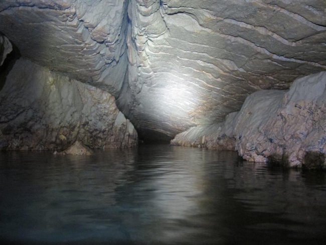 Un siphon, long 160 m, profondeur 12 mètres.