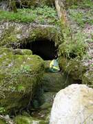Situation Besançon (direction Pontarlier --> Valdabon --> Pierrefontaine les Varans). Se garer à la station d'épuration du village (direction la vallée de la Reverotte). Emprunter un chemin de terre dans le virage. le suivre jusqu'à une petite barre rocheuse. Prendre le sentier qui longe cette barre (derrière un panneau annonçant un sens interdit pour éboulement). Historique A. Barbier (S.C.A.Valdoie) Description S1 = 25m Remarques Une corde d'une quinzaine de mètres peut être nécessaire pour descendre du cirque jusqu'à la source. |
