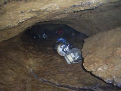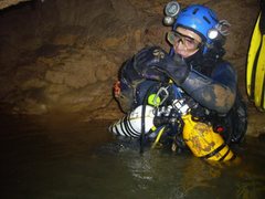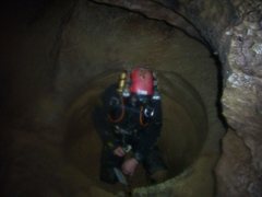 Une description complète suivra lorsque j'en aurai fini l'exploration. Mais quelques infos tout de même. Le siphon 1 débute par une étroiture sympathique dans une petite trémie, le décapelé est ici obligatoire (infranchissable même avec des 2.5 l) ou à l'anglaise. Au delà 50 m de siphon chaotique et labyrinthique pour déboucher dans un boyau donnant sur des galeries spacieuses. Puis un S2 au fond d'une diaclase, environ 90 m puis à nouveau belle galerie et S3.