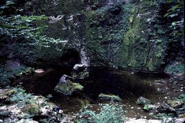 à l'intérieur, une vaste doline résultant de l'éffondrement d'une voûte, on trouve la grotte nord du creux billard dite aussi grotte des suisses et la perte par la quelle on rejoint le lison souterrain. le creux billard est à 3' de marche du porche du lison lequel est flanqué aussi par la grotte sarrazine, un des plus spectaculaires sites karsitques de france. du haut du creux billard en période de dégel tombe une cascade d'une centaine de mètres !