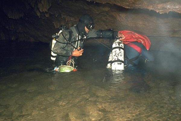 En 1970, la vasque d'entrée a fait l'objet d'une rapide plongée par deux