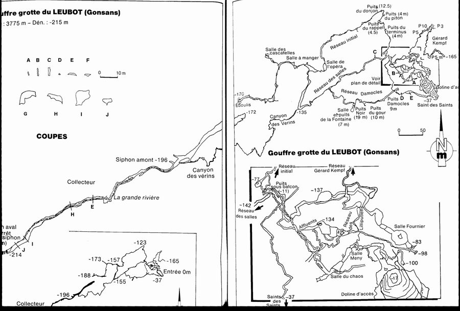 Situation : La cavité est située sur une propriété privée, il est nécessaire d'obtenir l'autorisation du propriétaire avant toute incursion. Descriptif : Mieux vaut une topo que de long discours. C'est la SHAG en 1973 par l'intermédiaire de Aucant et Chapuis qui plongea le siphon terminal. Il mesure 60 m de long derrière 20 m de galerie jusqu'à un deuxième siphon non franchit à – 215m.