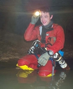 Cette fois-ci, le plongeur passe l'étroiture encore équipé d'un narghilé, ainsi que d'un marteau pneumatique pour élargir cette étroiture depuis le côté amont, où l'accès est plus aisé pour travailler. En sécurité, le plongeur porte en plus un bi 4l à l'anglaise.