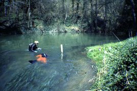 En juin 1980, lassèchement du canal qui relie la Marne à la Saône tarit la source dont les eaux séclaircissent . Bernard Le Bihan poursuit lexploration jusquà 650m (-18).