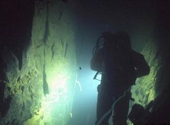 Le S3 démarre par un beau puits noyé scindé en deux par une grosse lame. Point bas à -16, 41 m de parcours et nouvelle cloche. De là démarre un beau