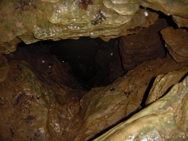 A l'aval du ruisseau souterrain, le S.1 (5m ;-1) enchaine avec 30m de galeries jusqu'au S.2 (5m ;-2) suivi d'un S.3 40m plus loin.