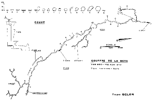 Puits de 40m dentrée, 1600m de rivière puis siphon aval plongé sur 500m jusquà la liaison avec le siphon amont du Rupt du Puits. Ce siphon mesure à présent 1770m.