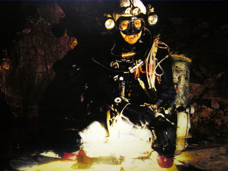photo de Jochen Hasenmayer. Affiche dans la salle d'un petit cinéma où on projette 50' de film sur ses exploration , par Maxime de Gianpietro