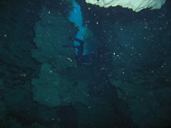 Une grande salle sur le cote est appellée "La cathédrale" par rapport a sa hauteur et l effet de lumière qui pénètre par ses 3 entrées. La profondeur y est limitée a 36 mètres, et les gardes forestiers peuvent vérifier les ordinateurs ou profondimètres en fin de plongée, afin de surveiller les éventuels " récalcitrants "...