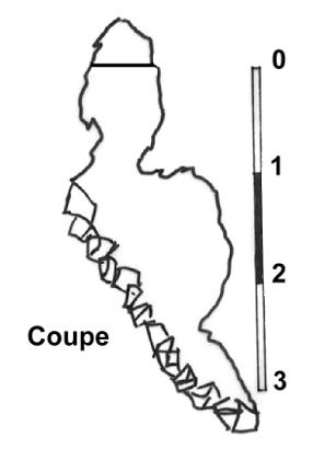 Le siphon s'élargit un peu à un mètre de l'entrée et se calque sur une faille que l'on suit jusqu'à -3. Là, un éboulis instable et peu engageant barre la route.