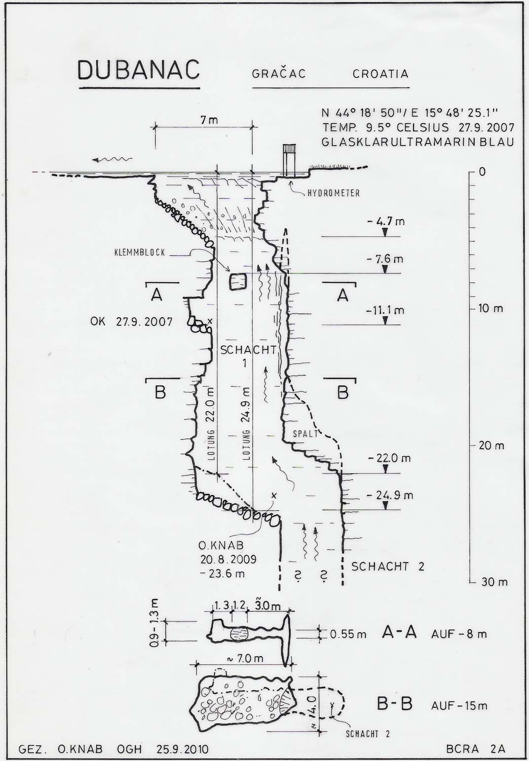 Explored by Simon Burja (SLO) et Sebastian Zagar ( SLO) to end of line , members of KTSR Explorer to max depth of -95m on CCR Inspiration Vision. |