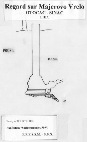 Puits bati de 13m. butant sur un plan d'eau impénétrable à -2 (interstrate). La cavité serait en relation avec Majerovo Vrelo.