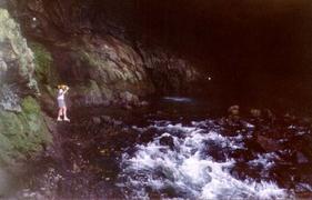 Le prolongement du conduit se trouve à -10. Il faut quitter la rive gauche pour la rive droite, et après une une étroiture verticale à -11, on atteint rapidement -24, puis le conduit plonge régulièrement jusqu'à -35, à environ 100m. de la vasque.
