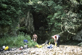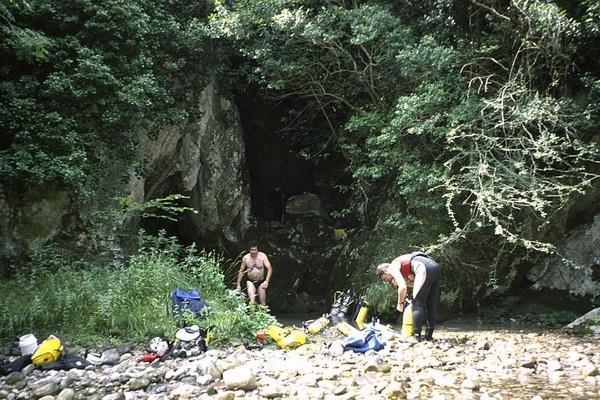 Deux plongées de l'équipe de la S.S.Genève (Cathy Loumont, André Pahud) et du G.S.Doubs (Dominique Bertin, Gérard Chorvot) en 1978, jusqu'à 170 m de l'entrée (-44).