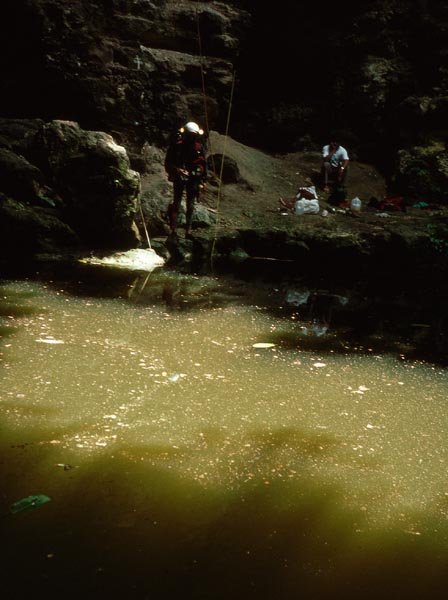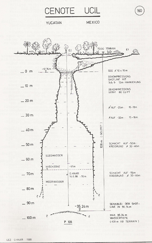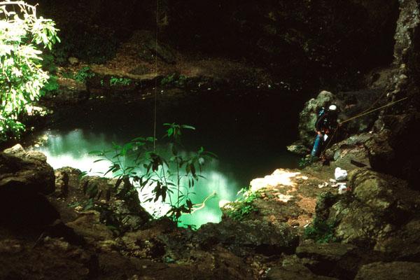 Cenote Ucil,Cenotillo,Yucatan,Mexico , O.Knab avant la Plongée jusqua –70m le 16.6.1988