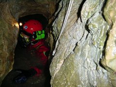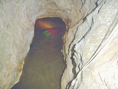 spéléologie ne nous ont apporté aucun éclairage supplémentaire. Margrit Hohl plonge la source en 2003. arrêt sur étroiture sévère après un peu plus d'une dizaine de mètres. |