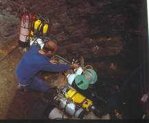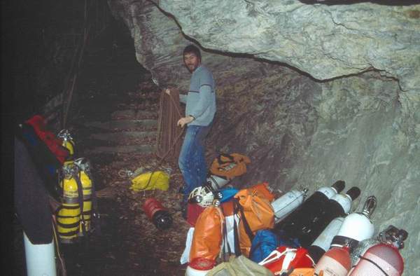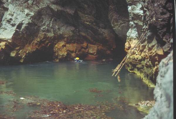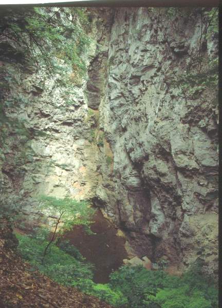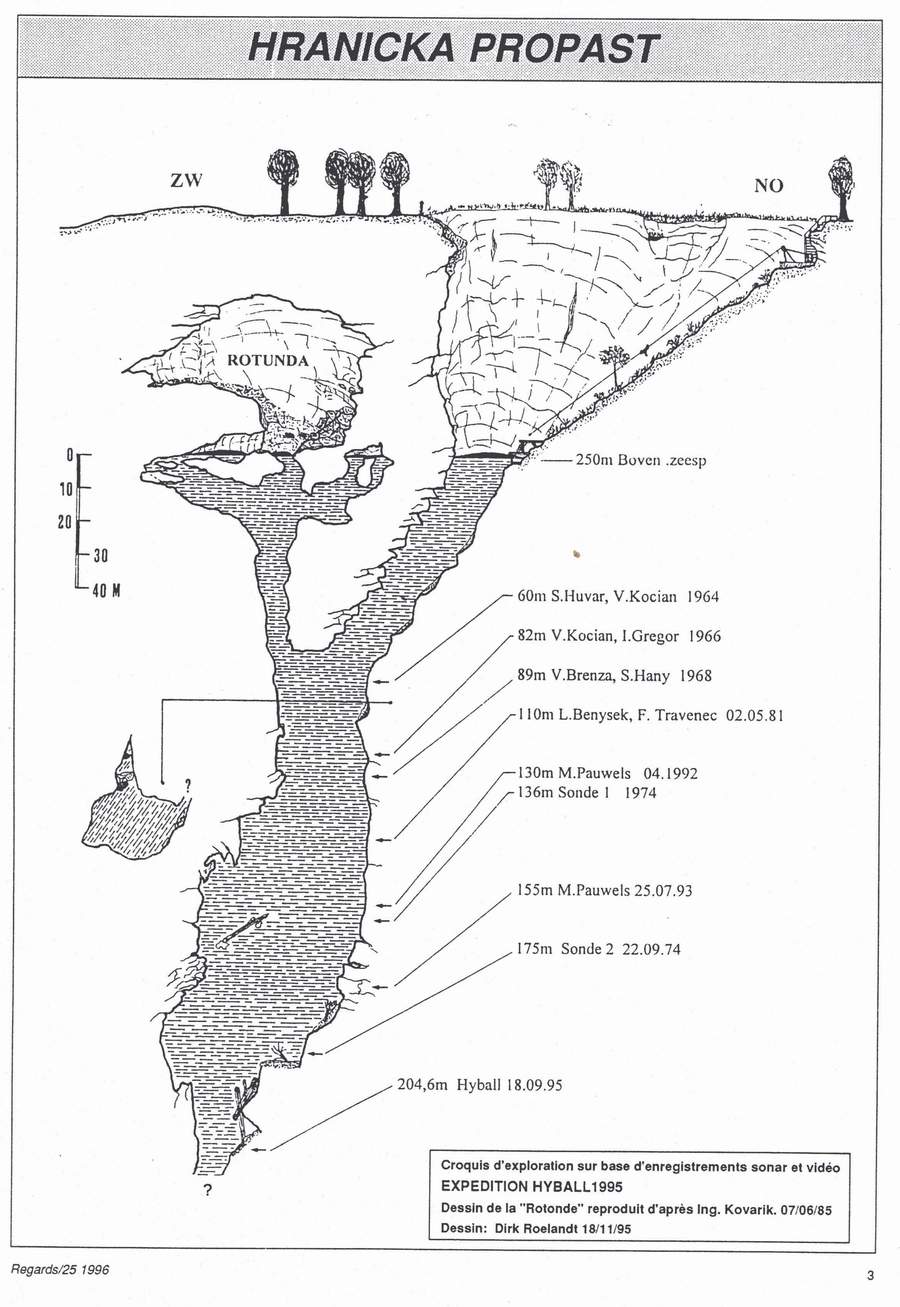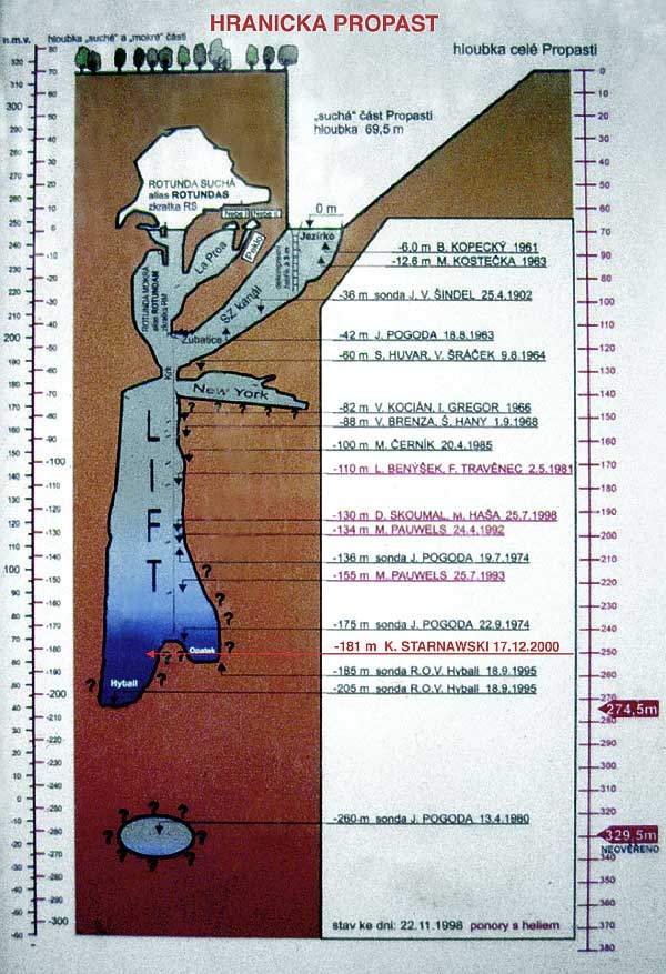 Situation Dans le nord du karst morave, 80 km au nord de Brno. Il s'agit d'un gouffre de 65m de profondeur, baigné par un plan d'eau pétillant des bulles de CO2 ; Température : 18°C