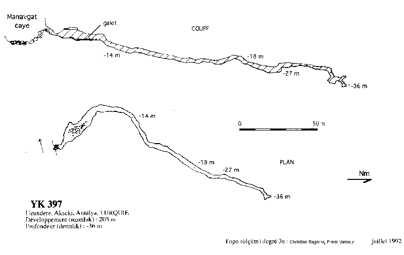 Découverte en août 91 par l'expédition « Yoruk 91 », puis plongée par Christian Bagarre, Claude Gilly et Frank Vasseur durant l'expédition Manavgat 92.