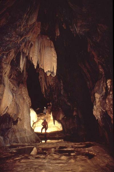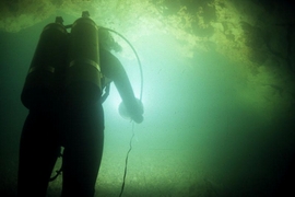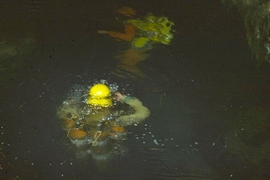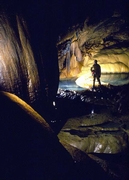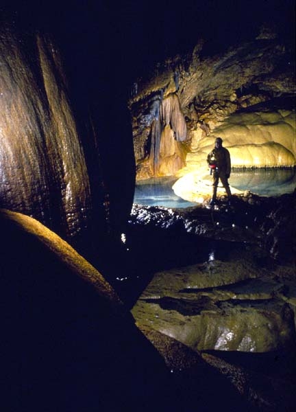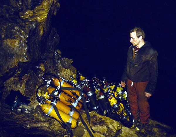 Bernard le Bihan a relié deux lacs souterrains, puis plongé un siphon (125m ;-35) jusqu'à une immense salle noyée.