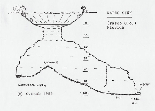 Exploré par Oliver Knab le 8.6.1986 jusqua – 58 m profondeur (point le plus profond de cette sinkhole)