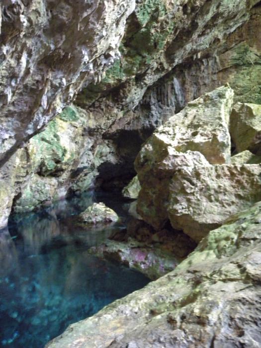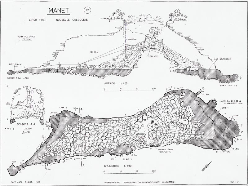 qu'on y trouve des coquilles de nautiles. Descrition Grotte volumineuse de 192.38 m de longeur qui donne accès à 2 lacs souterrains avec de l'eau cristalline (Visibilité 40m) Le siphon sud-ouest est exploré en apnée par O.Knab : Développement : 12m, profondeur : 3m ( 21.2.1988 ) Arrêt sur impasse. Le siphon nord-est : tunnel de 8 x 4m , Concrétions spéctaculaires sous l'eau.Ph.Brunet plonge ce Siphon le 23.8.1995 sur 50m de distance et 16m de profondeur.Le siphon se termine là. Bibliographie Höhlenpost Nr.78 , 1988, p.37 –47, O.Knab , Speleonautic 88