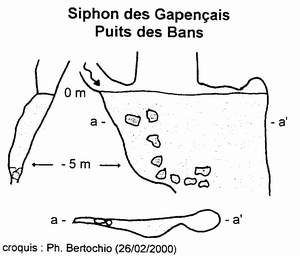 fait que la galerie est plongeante et étroite, l'espoir du siphon court