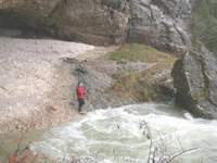 Situation Lieu-dit: Gorges de la Souloise, Région Dévoluy, Sous-bassin : Drac Cavité située à la sortie des gorges de la Souloise, rive droite. On y accède par un sentier qui se prend à la pointe du virage du Chateau, à partir de la route D117. Le sentier balisé en jaune conduit vers le fond du torrent de la Souloise et remonte sur l'autre rive.