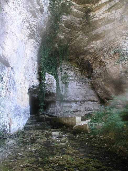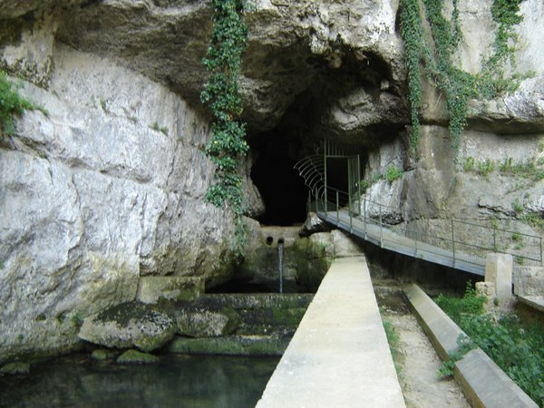Cette résurgence se trouve sur la commune de Corveissiat. Prendre la route en direction de Thoirette. Avant un tournant à gauche, la grotte est indiquée par un panneau. Un sentier s'ouvre dans le mur, au niveau du belvédère, il descend sur la droite, le long de la falaise. Arrivé en bas, un chemin emmène le long de la roche, au porche d'entrée. A ce jour le dernier tiers du sentier est interdit à la circulation à cause de risques d'effondrements.