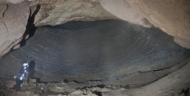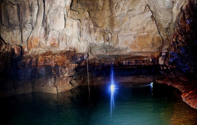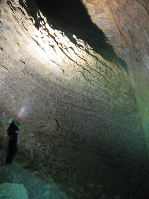 A l'autre extrémité se situe la grande salle d'effondrement (une soixantaine de mètres de haut).