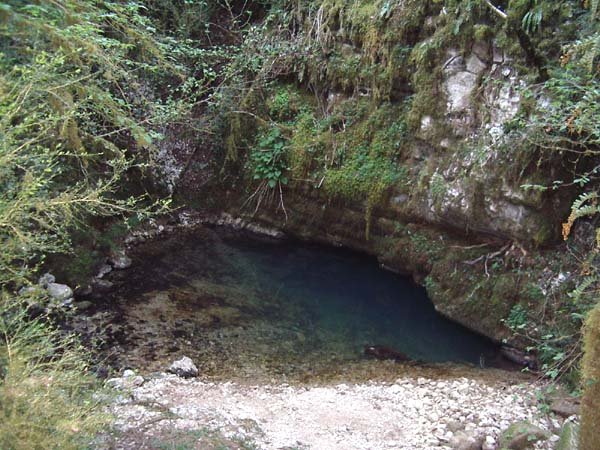 Situation Garer la voiture sous le viaduc, rive gauche. Prendre le santier parallèlle au ruisseau et le remonter à pieds jusqu'à la source (10 min de marche). Historique En 1976, Jean-Louis Fantoli plonge le siphon sur 140m (conduite forcée). . Arrêt à -20 dans un puits impénétrable. Description Source vauclusienne à gros débit. Remarques- conseils Attention, la société de pêche qui exploite la rivière protège le site. Ne pas chercher la confrontation et annuler toute plongée en leur présence. |