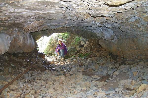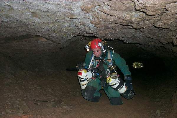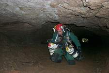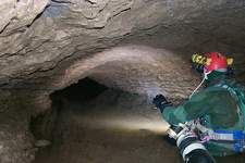 (2,4 x 1,4 m) conduisent à un siphon. S1 : 45 mètres, -2 mètres S2 : 185 mètres, arrêt à -16 mètres Le réseau est très ensablé. Certaines zones sont presque complètement remplies et la roche est très friable. |