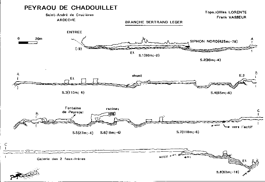 La branche Bertrand LEGER, copieusement alluvionnée de dépôts sableux, aurait pour origine une branche de la Cocalière, alors que le siphon Nord est une cheminée d’équilibre d’un collecteur profond principal qui n’est pas encore atteint.