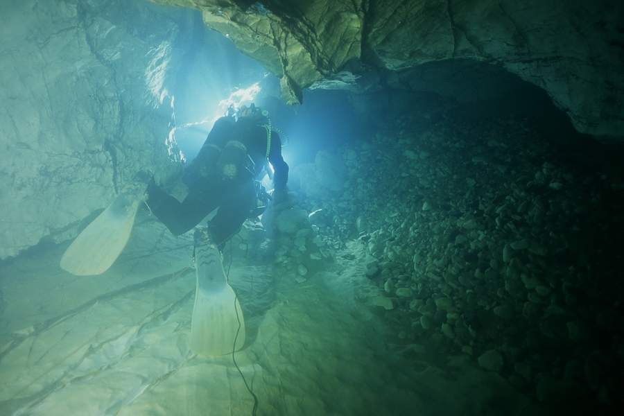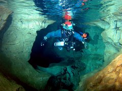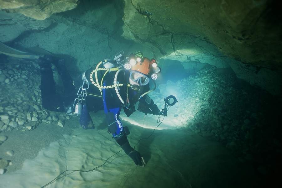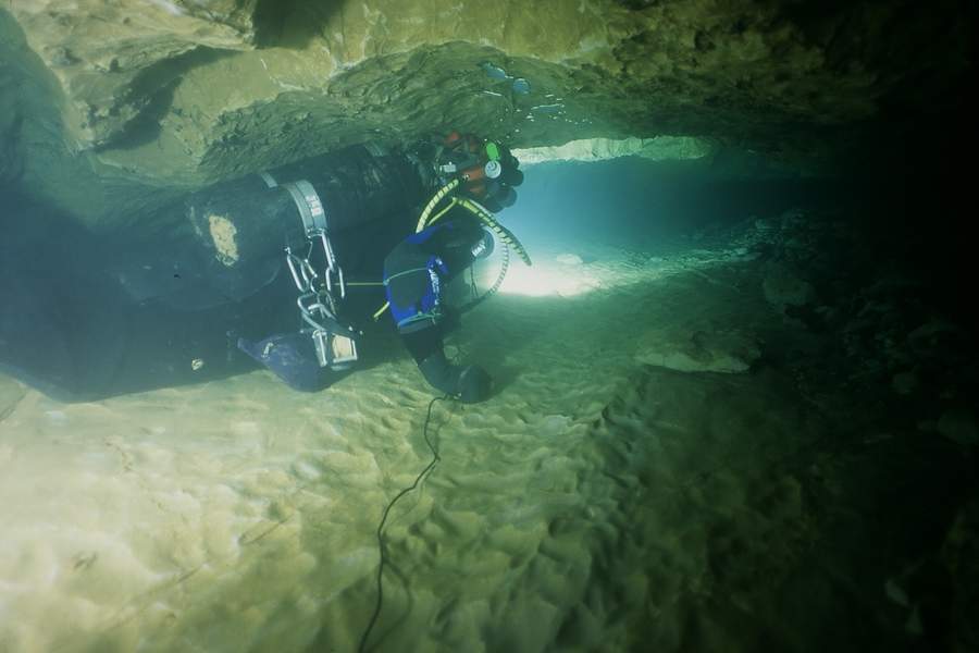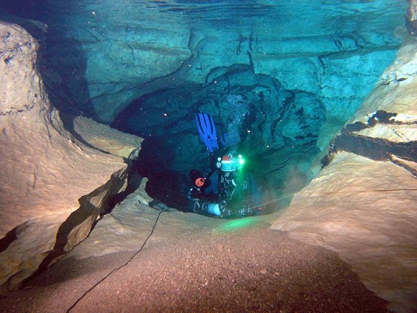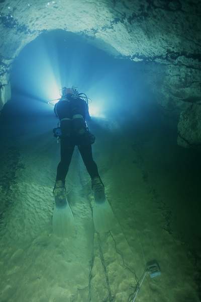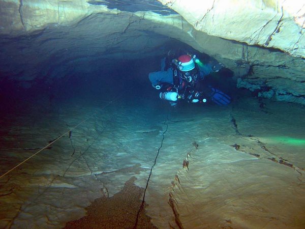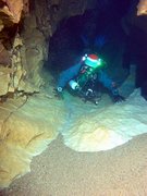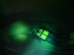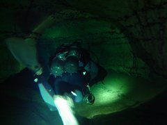 Whilst the first part of the cave has poor visibility, the deep section seems to stay clear, allowing quick passage for several divers. I used air and 11/47 diluents. Total dive time was 2.5 hours, but this includes extra stops.