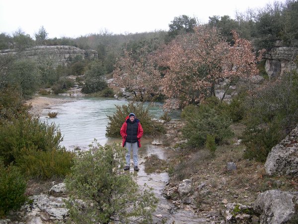 Laisser les véhicules au pont et remonter le lit asséché. Quelques centaines de mètres plus loin, dans le lit même de la Claysse, une pente de galets dévale sous la falaise d'albâtre vers une vasque fraîche précédée d'un rétrécissement à la section variable.