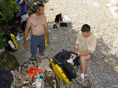 la mise à l'eau dans le siphon nord, par JL. Galera |